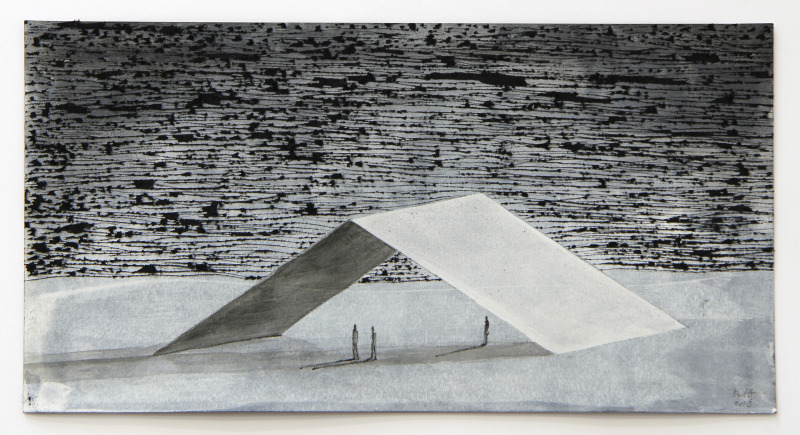 14,5 x 27,5 cm, gemengde techniek op zwart papier