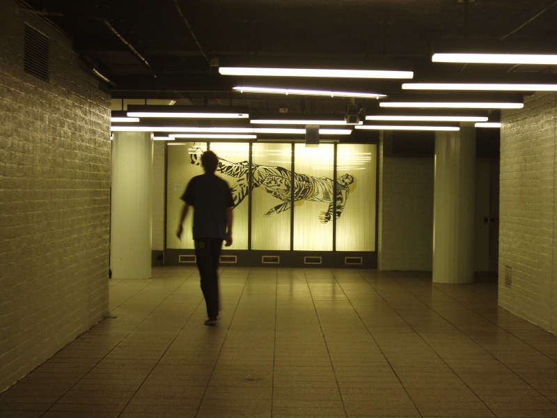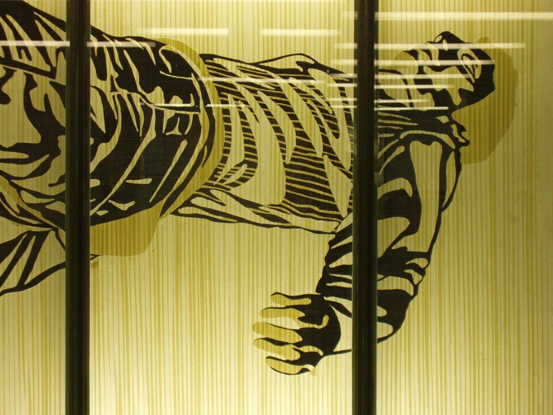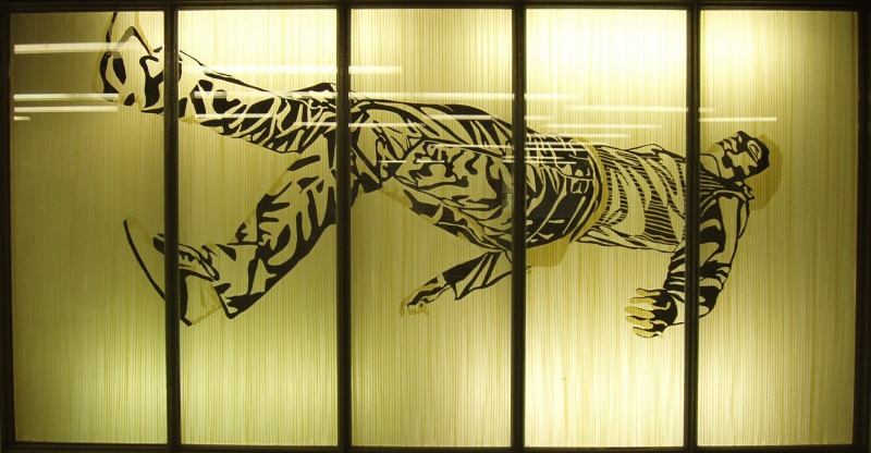Site-specific tape-installatie gemaakt in de etalagegalerie