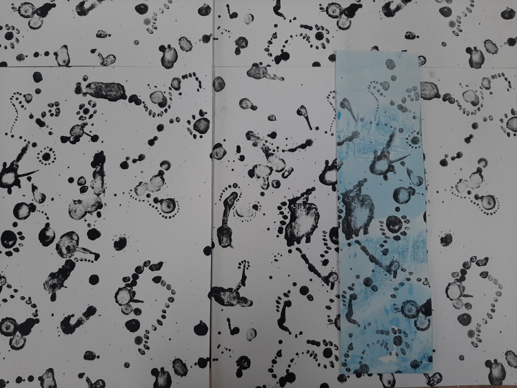 Vlekkensteen. Met een litho die aan alle zijden op zichzelf aansluit, kun je meerdere vellen als een puzzel aan elkaar koppelen om een groot doorlopend beeld te maken. Vandaag een poging gewaagd om dit met een vlekkenpatroon te verwezenlijken.