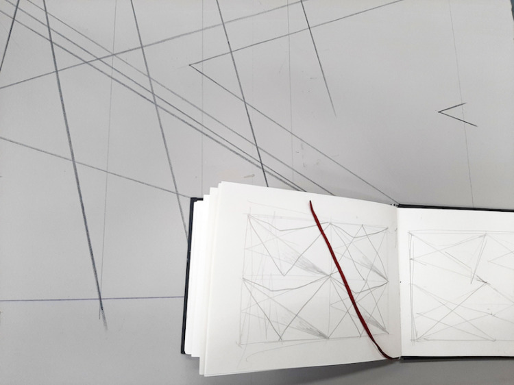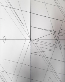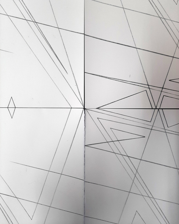 Hoewel de tekening er vrij afgemeten uitziet, is deze intuïtief ontstaan. Als je een 3d-model van deze tekening zou maken, zou je zien dat het er in werkelijkheid heel anders uit zou zien. In mijn tekeningen streef ik niet naar perfectie, maar wel naar een beeld dat wil overtuigen.