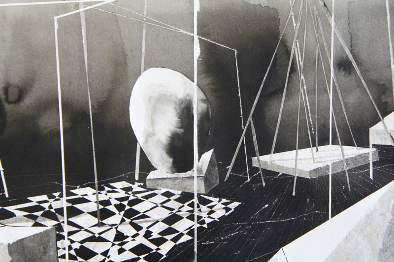 70 x 100 cm, gouache, inkt, vernis en collage op papier