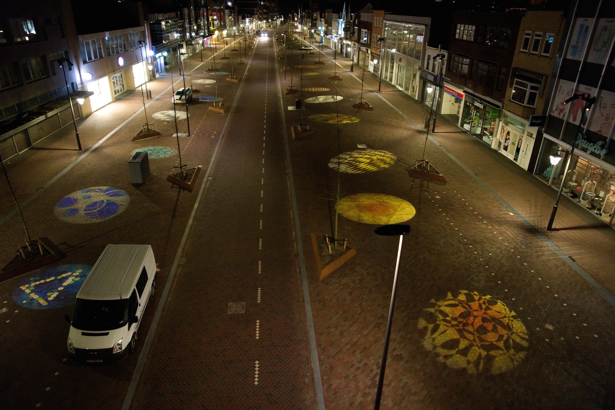 Achttien gobo-projecties in de Breestraat van beverwijk
