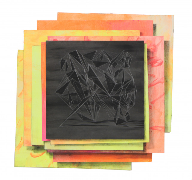40 x 40 cm, gemengde techniek op papier