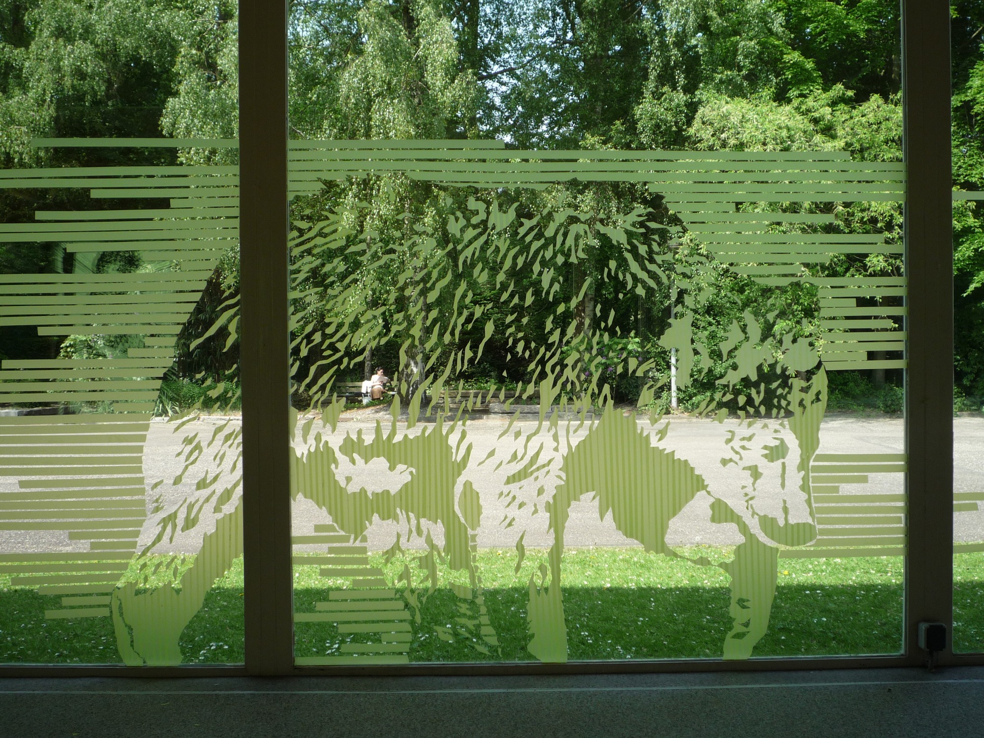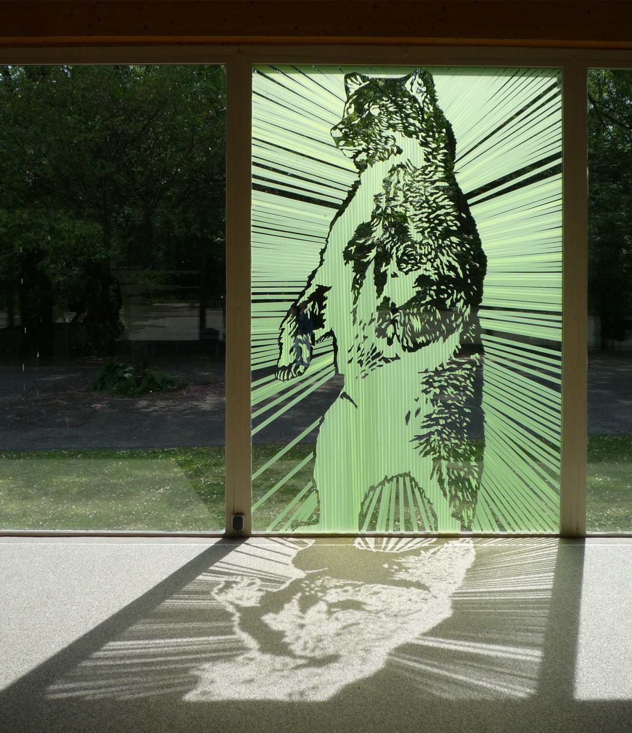 Site-specific tape-installatie op het raam, 285 x 178 cm