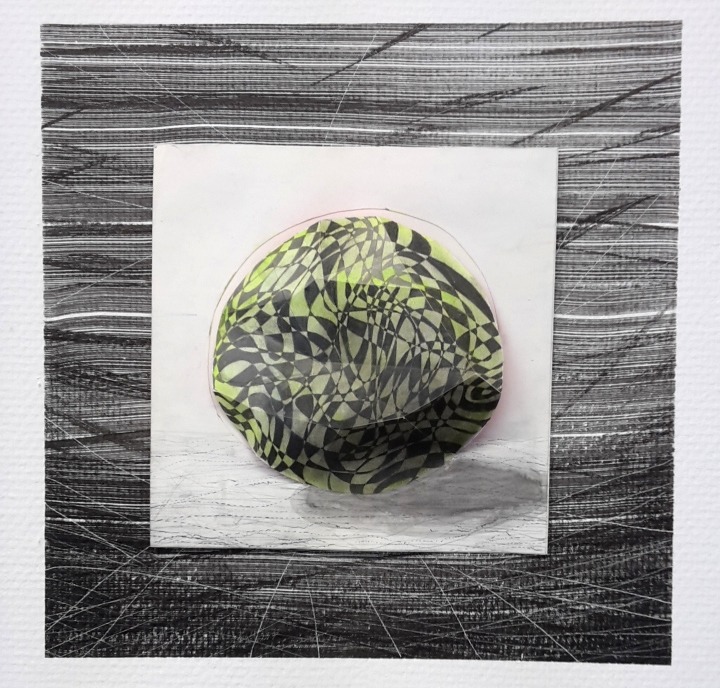 25 x 25 cm, gemengde techniek op papier | 40 x 40 cm, inkttekening op muur