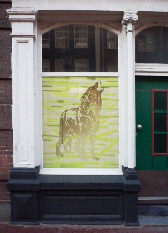 Zeven site-specific tape-installaties in etalages in de Zeeheldenbuurt in Amstredam, georganiseerd door Kunsttraject